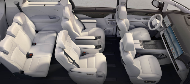 不管是高山7、高山8还是高山9,虽然尺寸各有不同,但清一水超3米的轴距和超5米的车长,都为车内留足了宽裕的空间。新车提供有2+2+3和2+2+2的6/7座布局可选,二排三排设立了长共轨,可以随时调节座椅布局,灵活利用不同的座椅设置来满足各类不同的用车场景。而新车内部车顶上17.3英寸的影音屏幕使用了莱茵认证的护眼级大屏,一是提供了清晰的观影效果,二是能够让二排、三排也拥有较佳的观影位置,结合车内双开且冷暖两用的冰箱,为座舱提供舒适且惬意的乘坐感受。